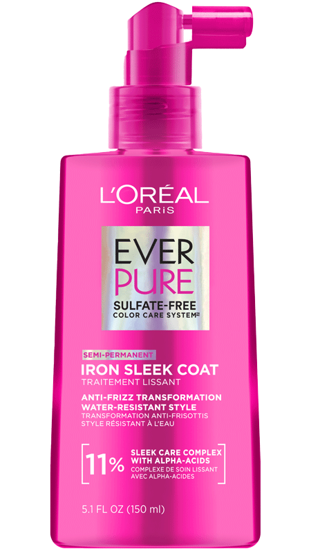 • El tratamiento EverPure Iron Sleek Coat recubre las fibras para resistir al frizz y ayuda a bloquear la humedad para crear un peinado liso y resistente al agua.